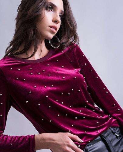 BLUSA ANNE KLEIN VINO CON BRILLOS DORADOS TALLA L
