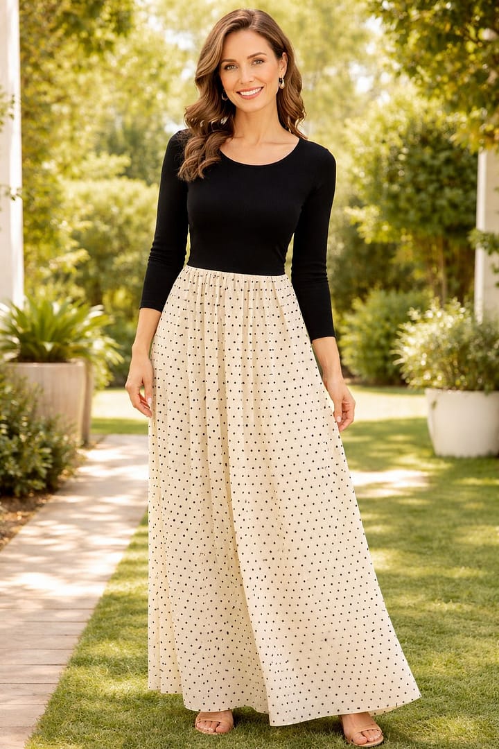 VESTIDO VC TALLA M BLUSA NEGRA Y FALDA BLANCA CON ADORNOS DORADOS cantidad